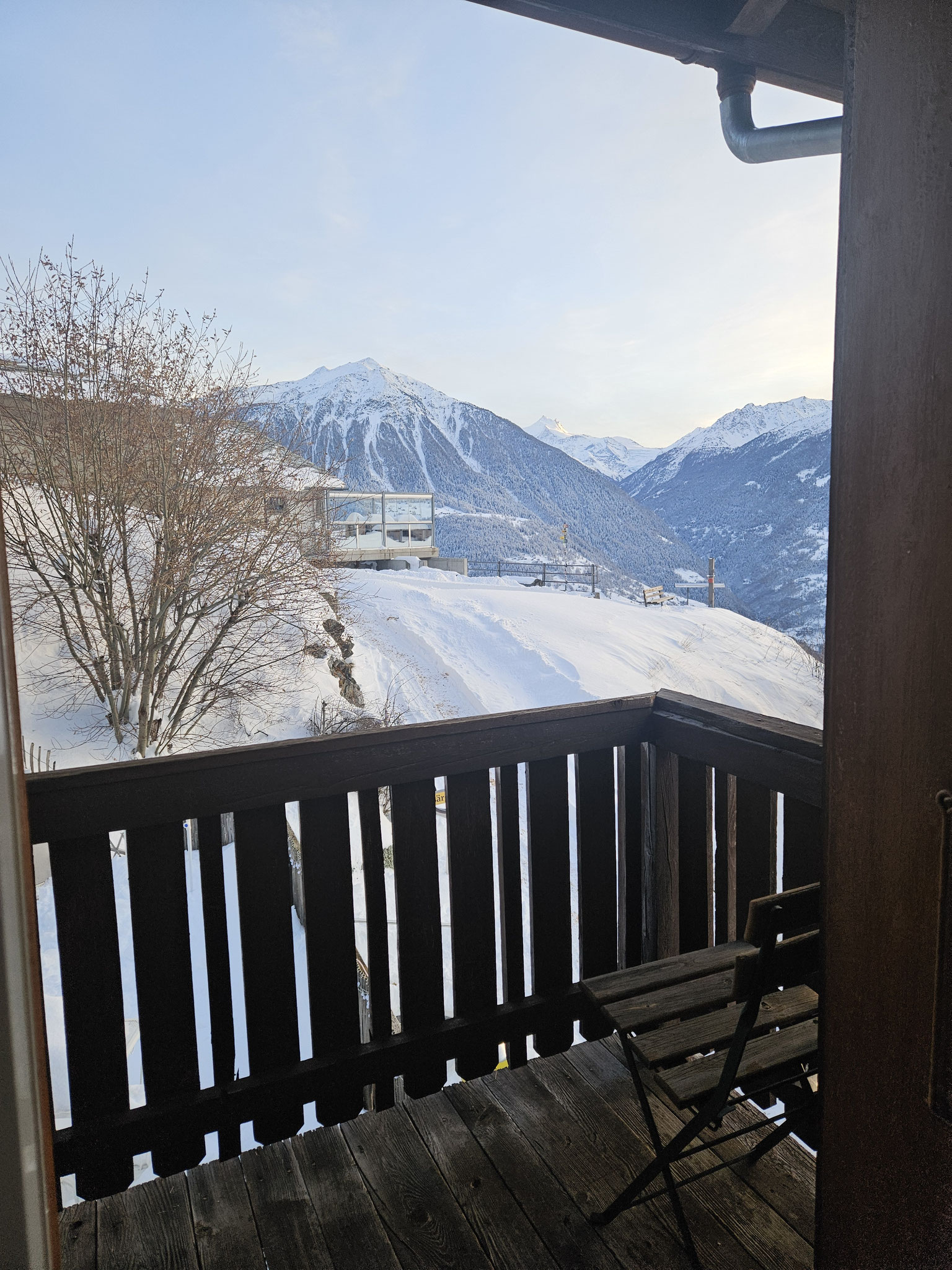 Ruhen Sie sich nach einem anstrengenden Wander- oder Skitag in diesem gemütlichen Zimmer mit atemberaubendem Blick aufs Rhonetal und Weisshorn aus. Mit Balkon.