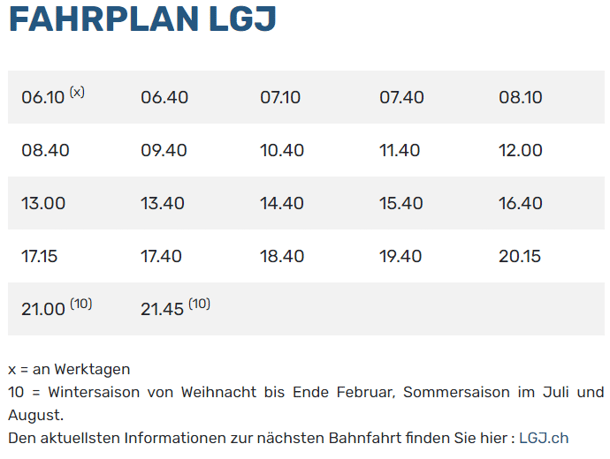 Timetable of the cablecar Gampel-Jeizinen: