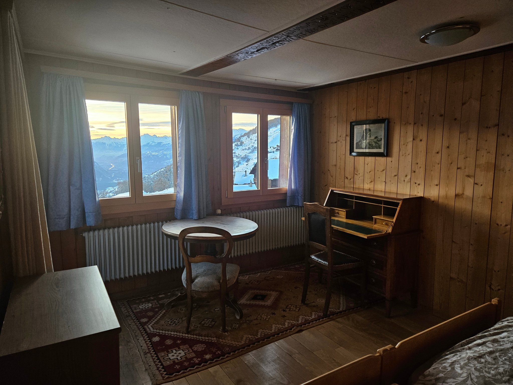 Après une journée de ski ou de randonnée éprouvante, détendez-vous dans cette chambre chaleureuse avec une vue fabuleuse sur la vallée du Rhône et le "Weisshorn". Avec balcon.